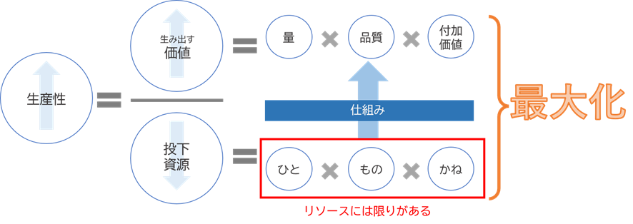 企業として国際的な競争優位性を保ち、限られた人材で最大限の利益を上げるためには、生産性向上が急務なのです。