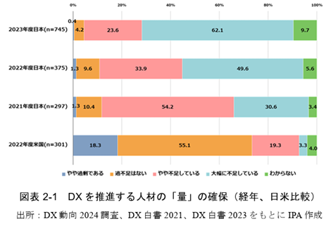 ※出典:IPA(独立行政法人 情報処理推進機構)の「DX動向2024 - 深刻化するDXを推進する人材不足と課題」より引用